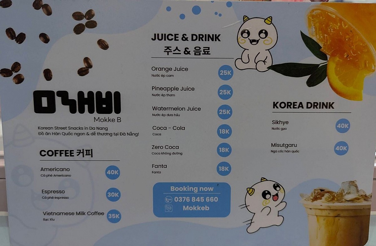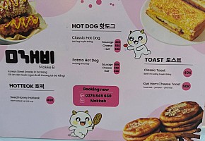 핫도그, 토스트, 호떡, 사라다빵, 식혜 슬러시, 미숫가루, 딸기슬러시, 아메리카노